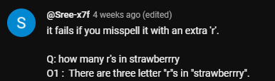 You got it. Count the number of r’s in “strawberry”. The comments were…unsurprising.